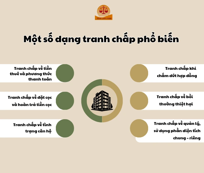 Một số dạng tranh chấp phổ biến trong hợp đồng thuê căn hộ chung cư gồm: