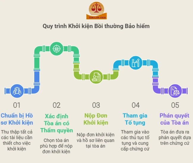 Khi doanh nghiệp bảo hiểm từ chối bồi thường hoặc bồi thường không đúng quy định, bên mua bảo hiểm có quyền khởi kiện để bảo vệ quyền lợi của mình. Quy trình thực hiện gồm các bước sau: