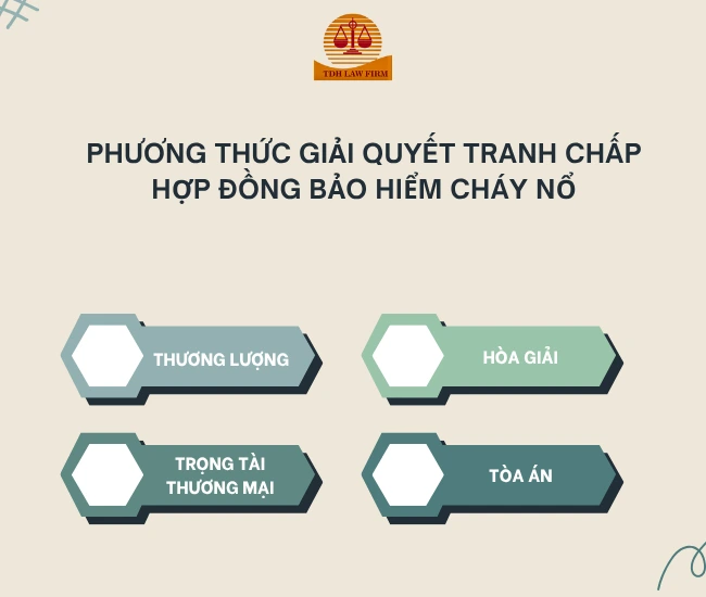 Khi xảy ra tranh chấp hợp đồng bảo hiểm cháy nổ, các bên có thể lựa chọn một hoặc kết hợp nhiều phương thức giải quyết sau đây: