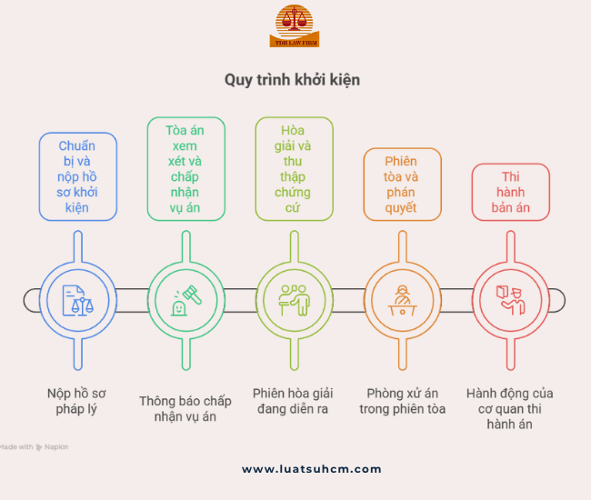 Theo Bộ luật Tố tụng Dân sự 2015 và Luật Nhà ở 2023, việc khởi kiện chủ đầu tư được thực hiện qua các bước sau: